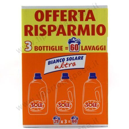 Detersivo Sole liquido lavatrice e a mano 20 lavaggi x 3