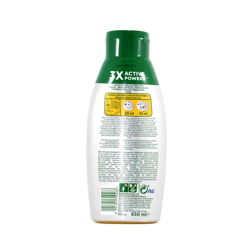 Detergente gel lavastoviglie Fairy all in one al limone ml.650