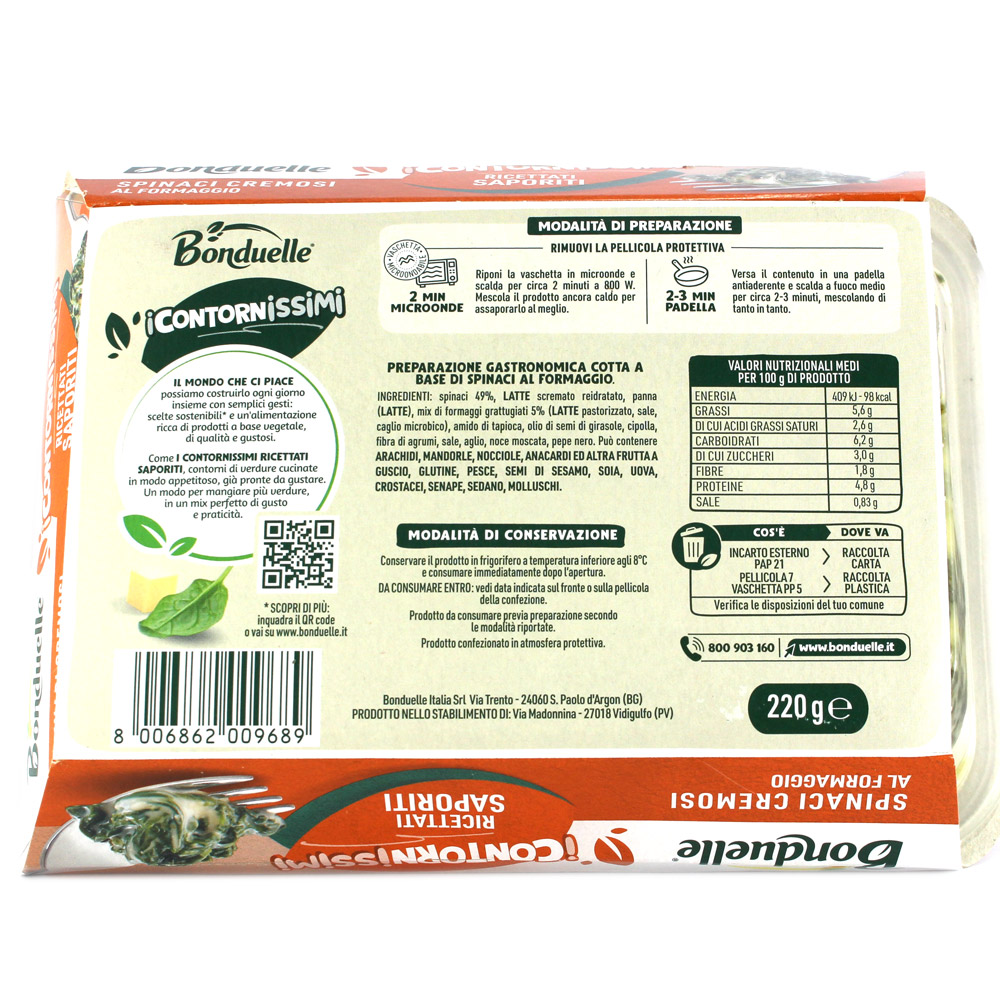 I Contornissimi spinaci cremosi al formaggio Bonduelle gr.240