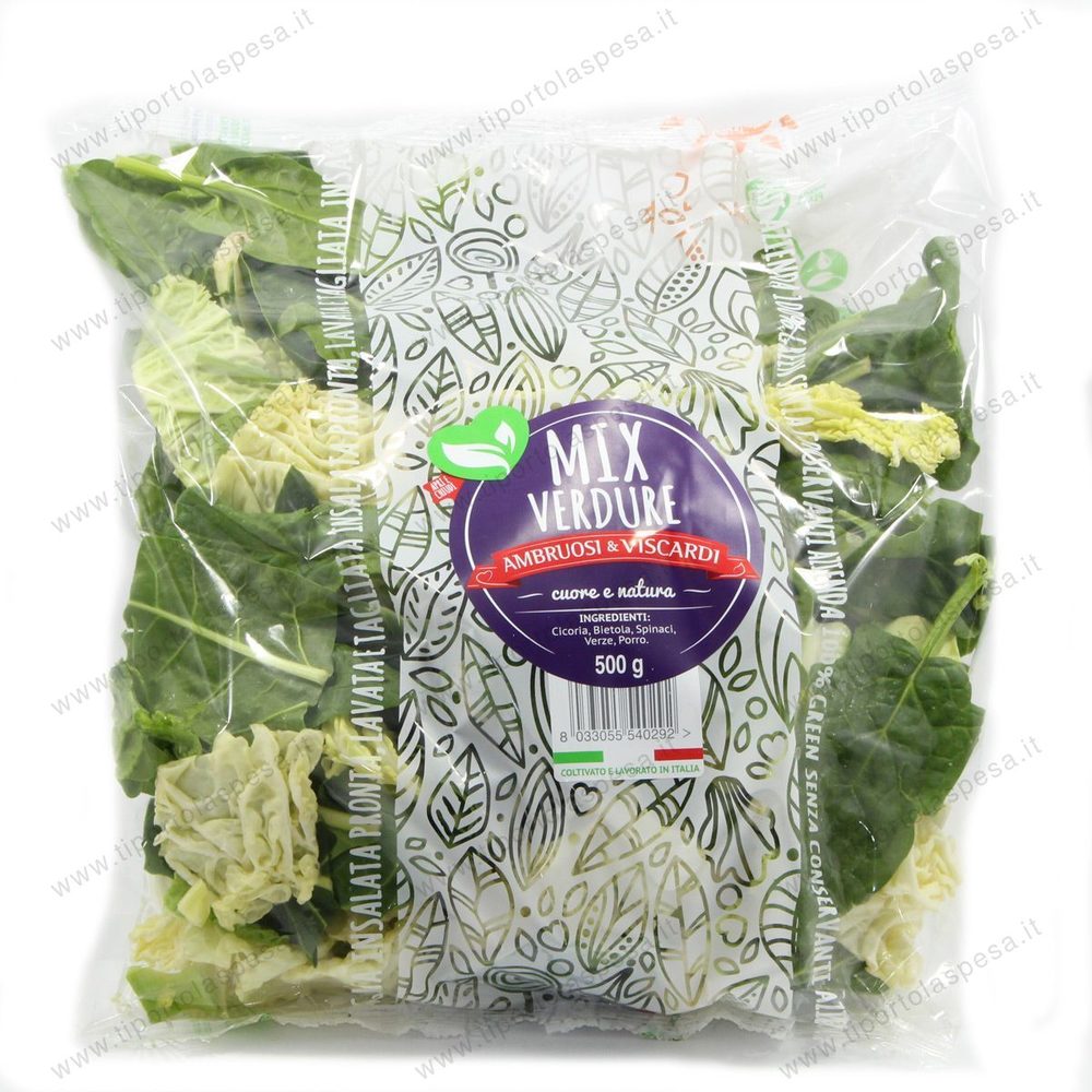 Composizione della busta : Cicoria, porro, verza, bietola e spinaci in quantità variabile da gr.500