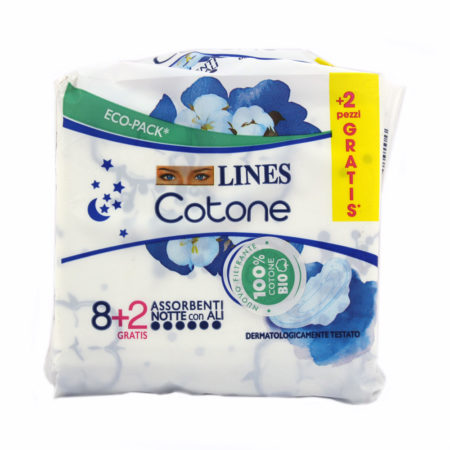 Assorbenti Lines cotone notte con ali x 8+2