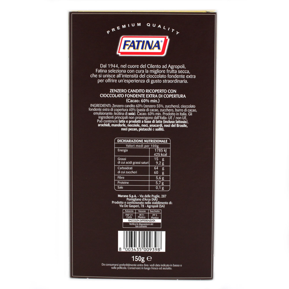 Filetti di zenzero Fatina ricoperti con cioccolato extrafondente di copertura gr.150