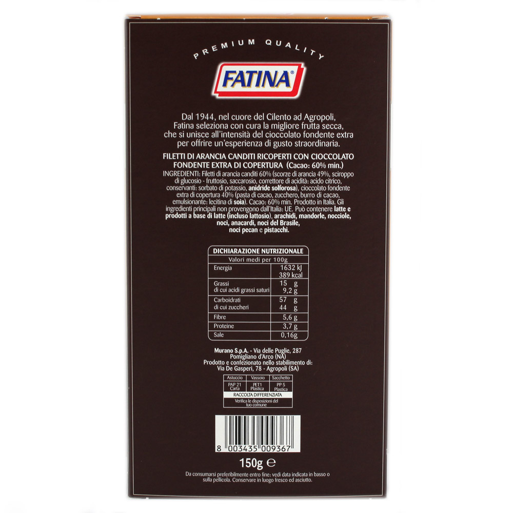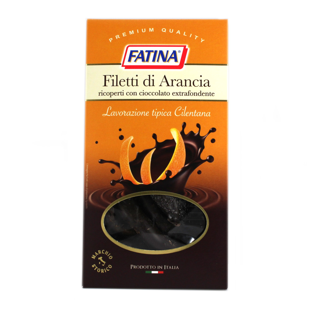 Filetti di arancia Fatina ricoperti con cioccolato extrafondente di copertura gr.150