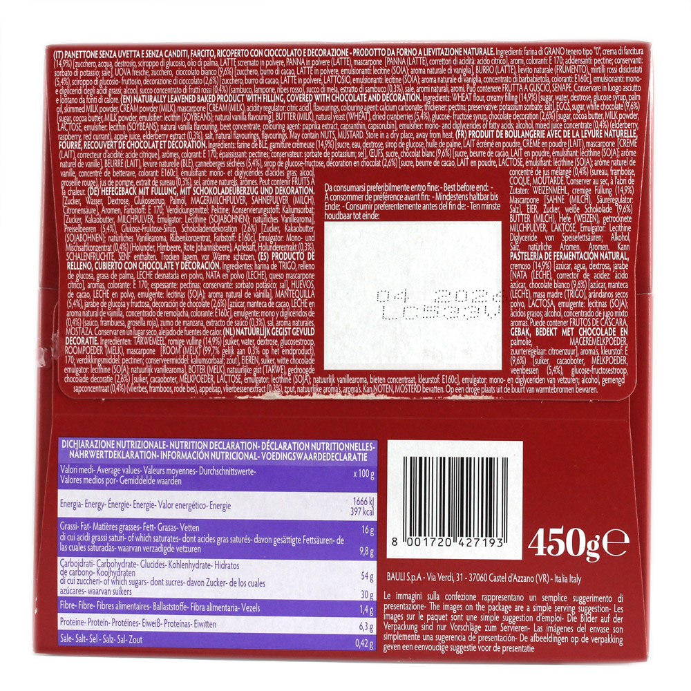 Creazioni di panettone Bauli con panna e frutti rossi gr.450