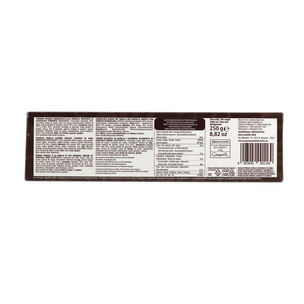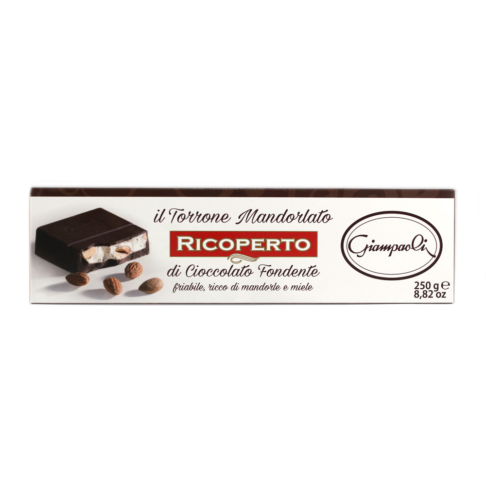 Torrone mandorlato Giampaoli ricoperto di cioccolato fondente gr.250