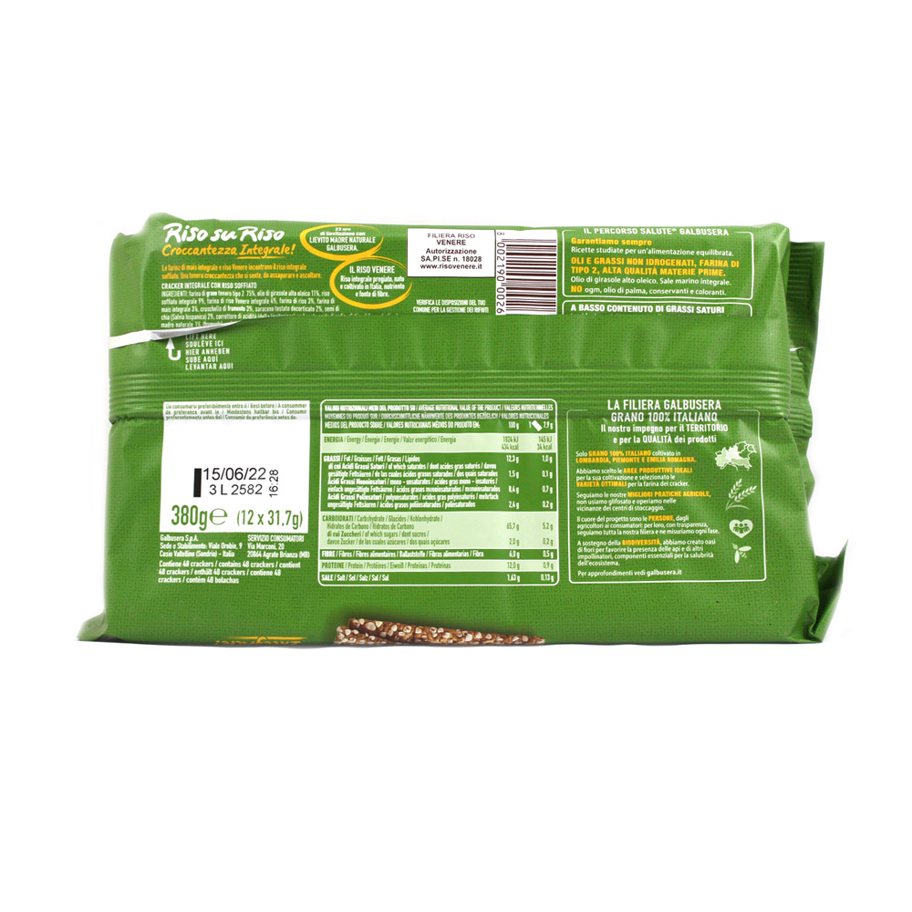 Cracker integrali riso su riso Galbusera gr.380, no ogm e no olio di palma